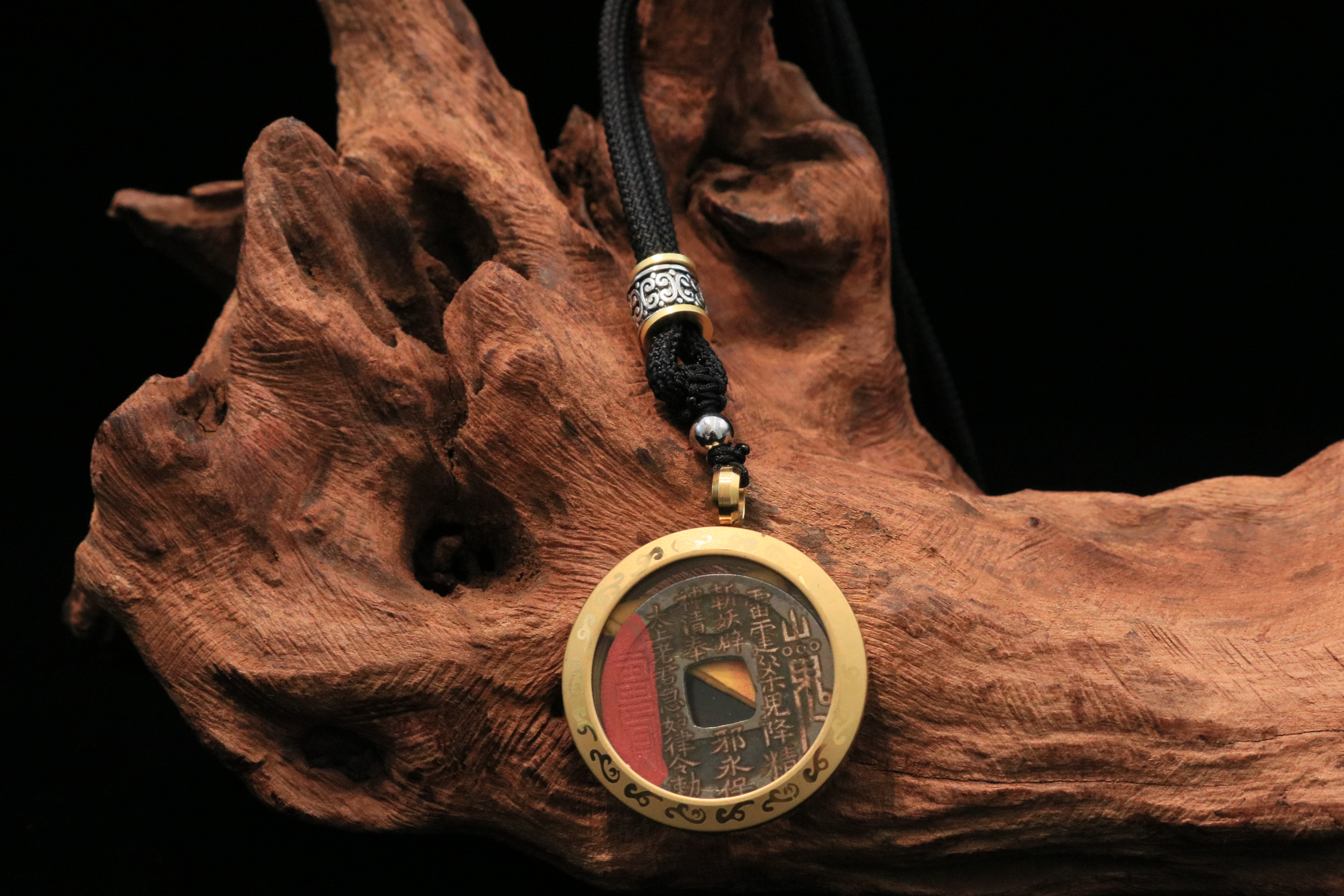 Vermilion Shangui Taoist Protection Coin Tai Chi Bagua Talisman Pendant Necklace