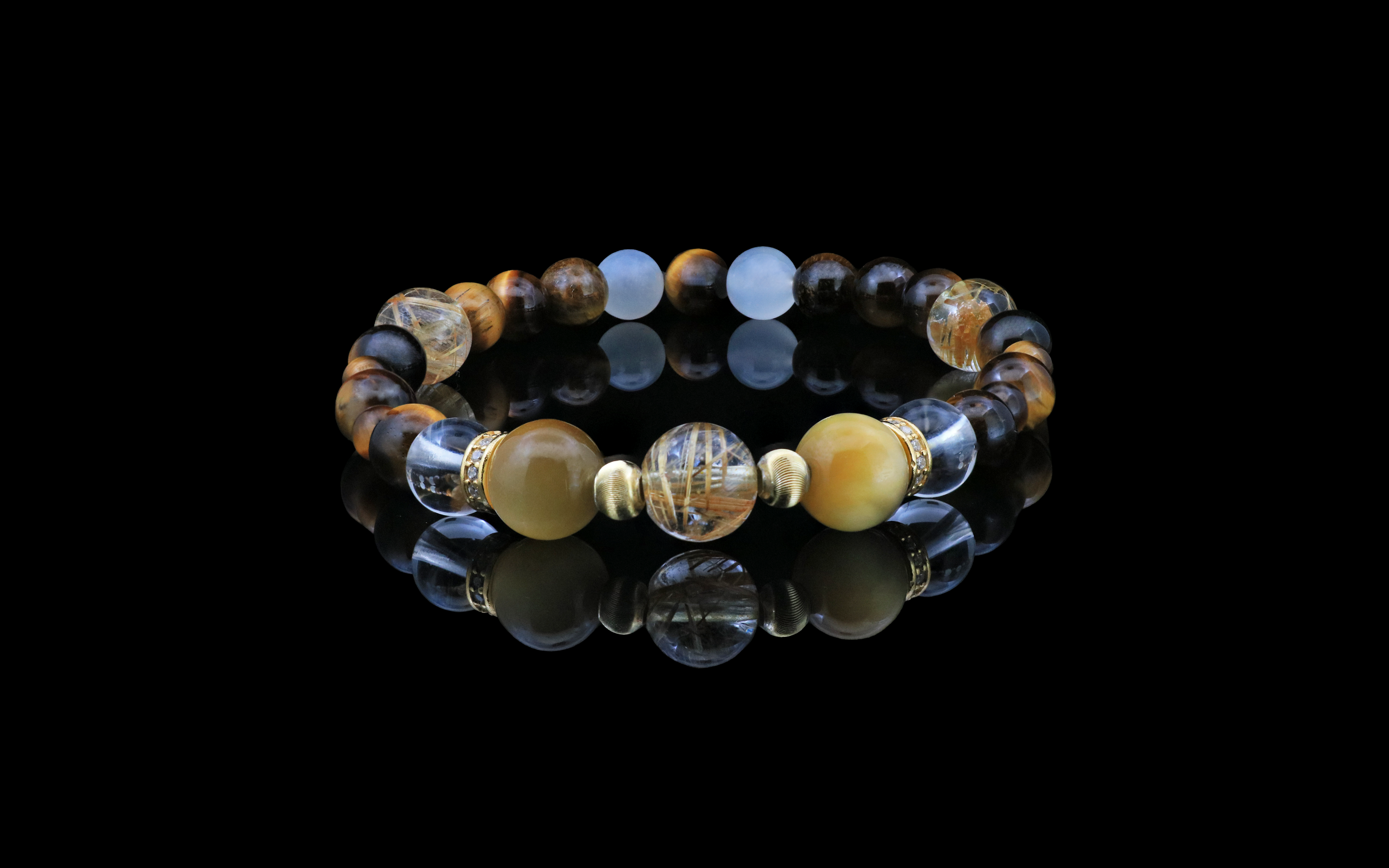 Golden Radiance Bracelet - A Harmony of Tiger's Eye, Yellow Tiger's Eye, Rutilated Quartz, Moonstone, and Clear Quartz