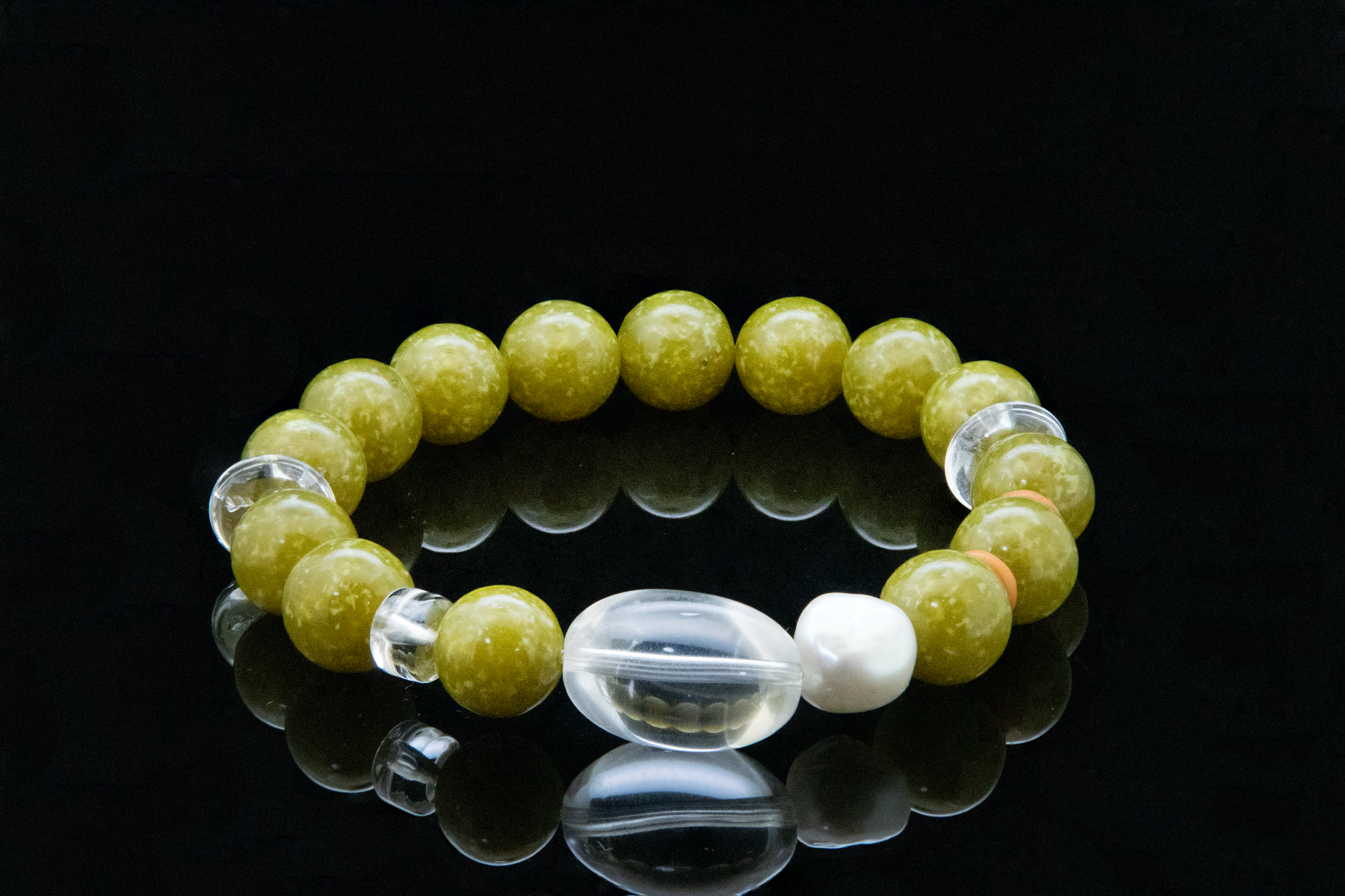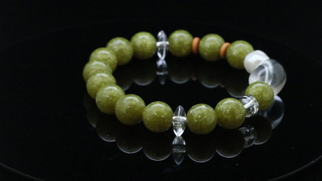 Whispering Forest Bracelet - A Blend of Green Rutilated Quartz, Snowflake Crystal, and Clear Quartz