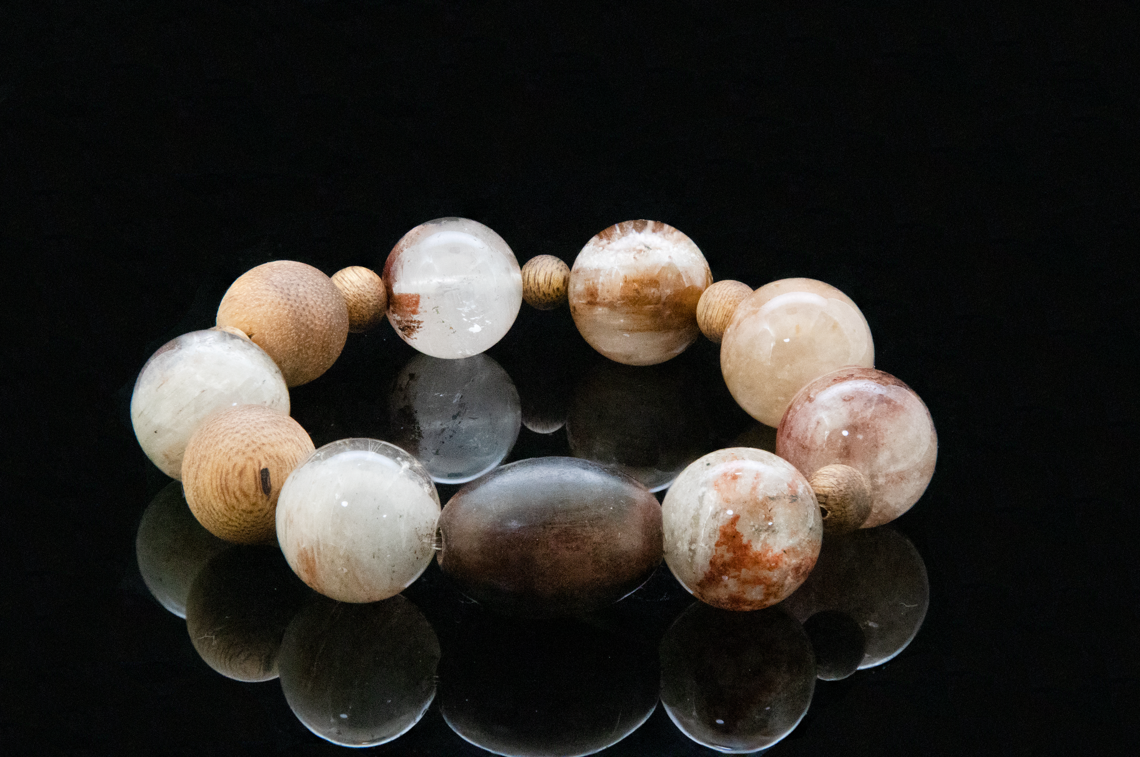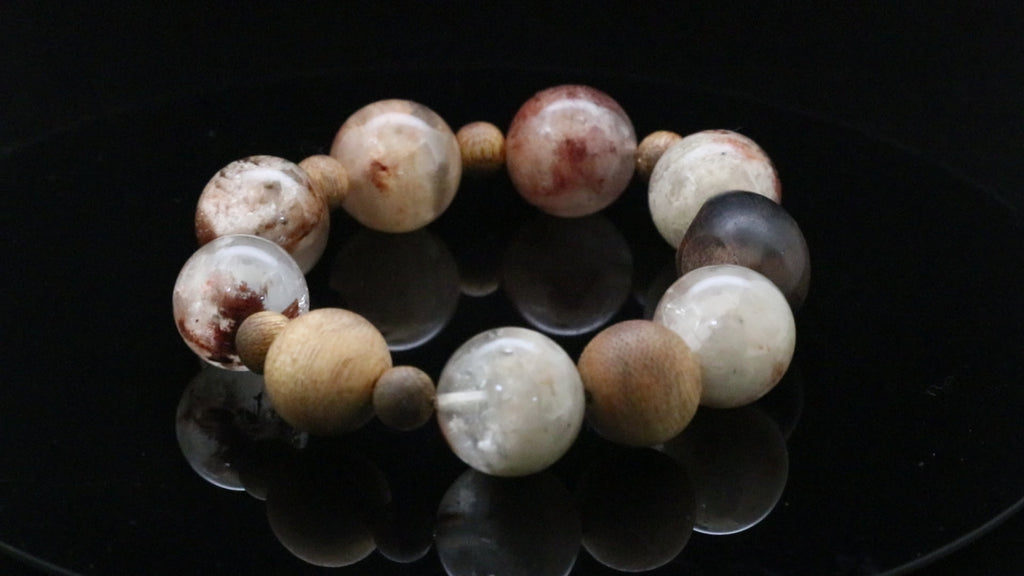 Snowflake Phantom Quartz with Cinnabar Bracelet