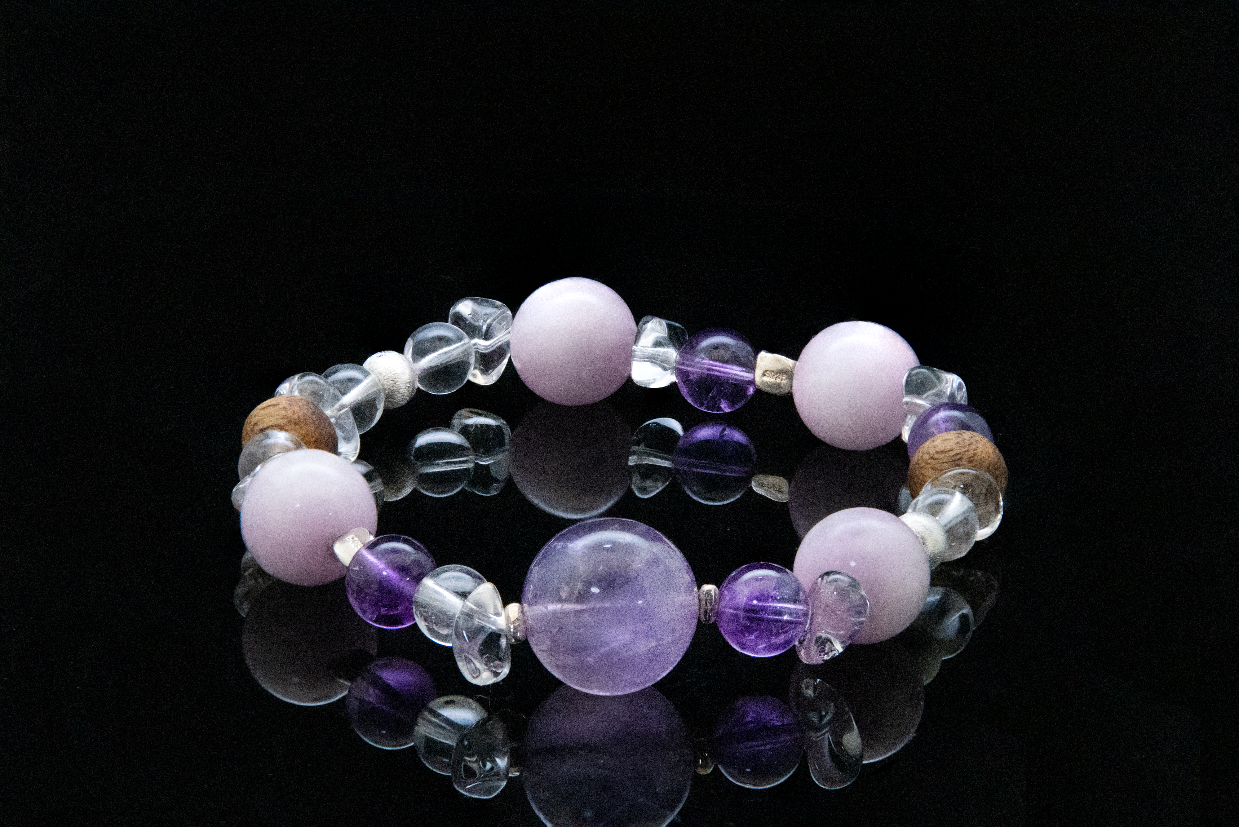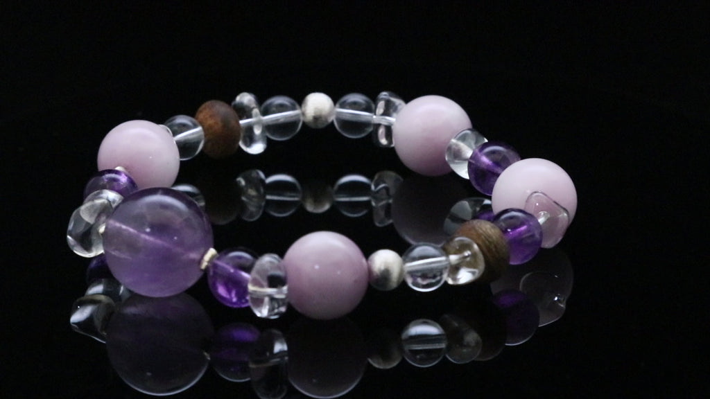 Mystic Harmony Bracelet - A Symphony of Amethyst, Clear Quartz, Lepidolite, White Phantom, and Pure Silver