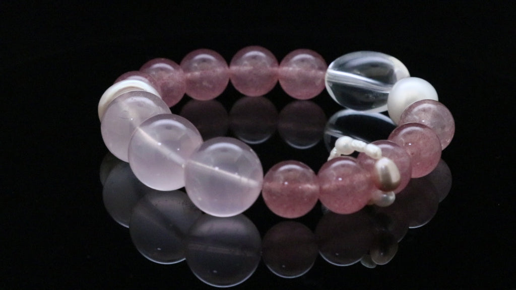 Celestial Bloom: Moonstone & Strawberry Quartz Bracelet