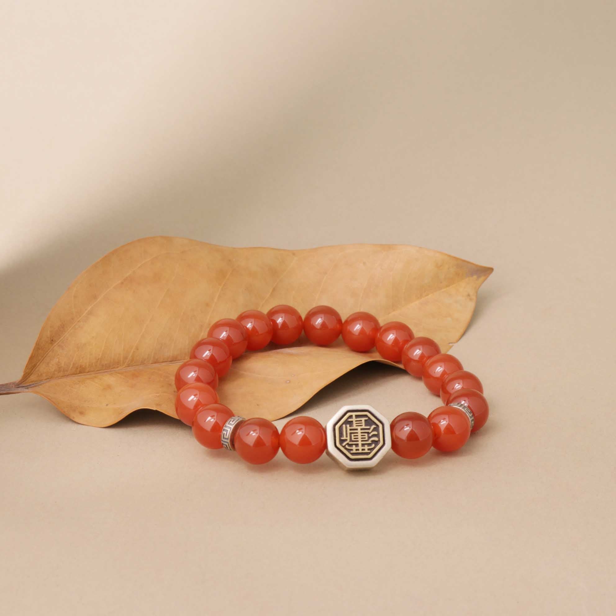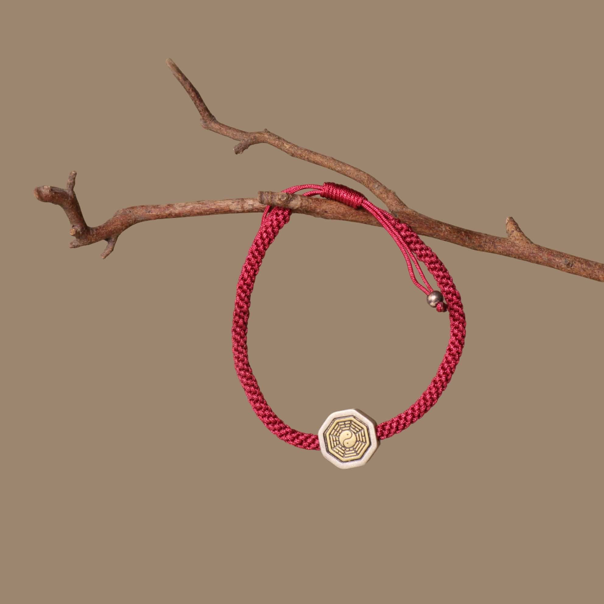 Natural Red Agate, Black Obsidian, Wine-Red Rope, Sterling Silver Tai Chi Bagua Symbol