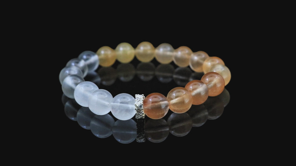 This radiant bracelet showcases the mesmerizing beauty of Rutilated Quartz, where golden threads dance within each crystal bead like captured rays of sunlight. Known for its powerful energy, this stone enhances clarity, confidence, and spiritual growth. A perfect blend of elegance and positive vibrations, this bracelet is a timeless piece for those seeking both beauty and inner strength.