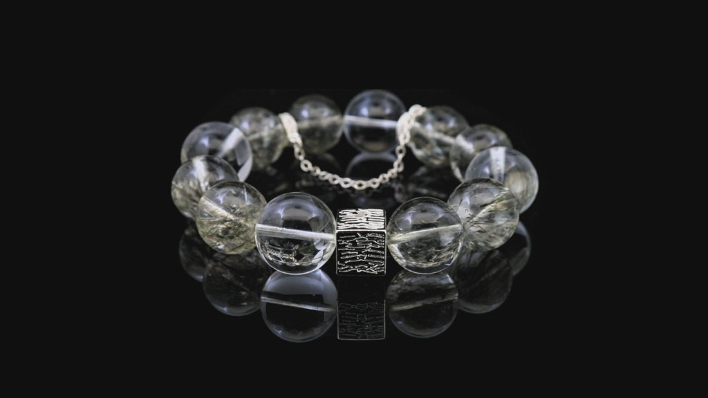 Green Rutilated Quartz, Clear Quartz, and Sterling Silver