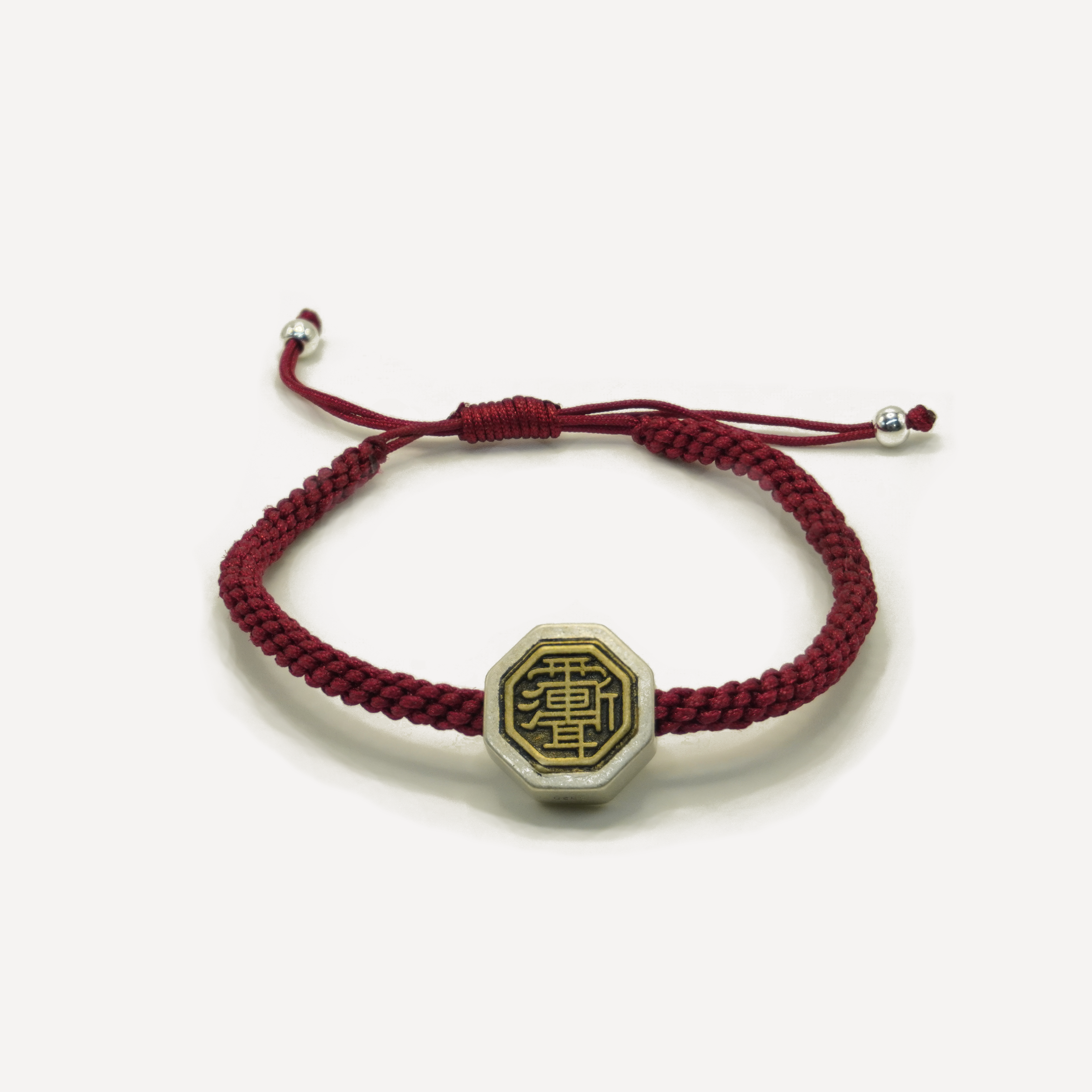This bracelet is crafted with natural red agate, black obsidian, and wine-red hand-woven rope, paired with a sterling silver Yin-Yang Universe Eight Cosmic Forces Talisman bead, symbolizing wealth, protection, and good fortune. Each bead is carefully selected and intricately carved. Red agate represents energy and prosperity, black obsidian stands for protection and balance, while the wine-red rope knot conveys auspiciousness and blessings.