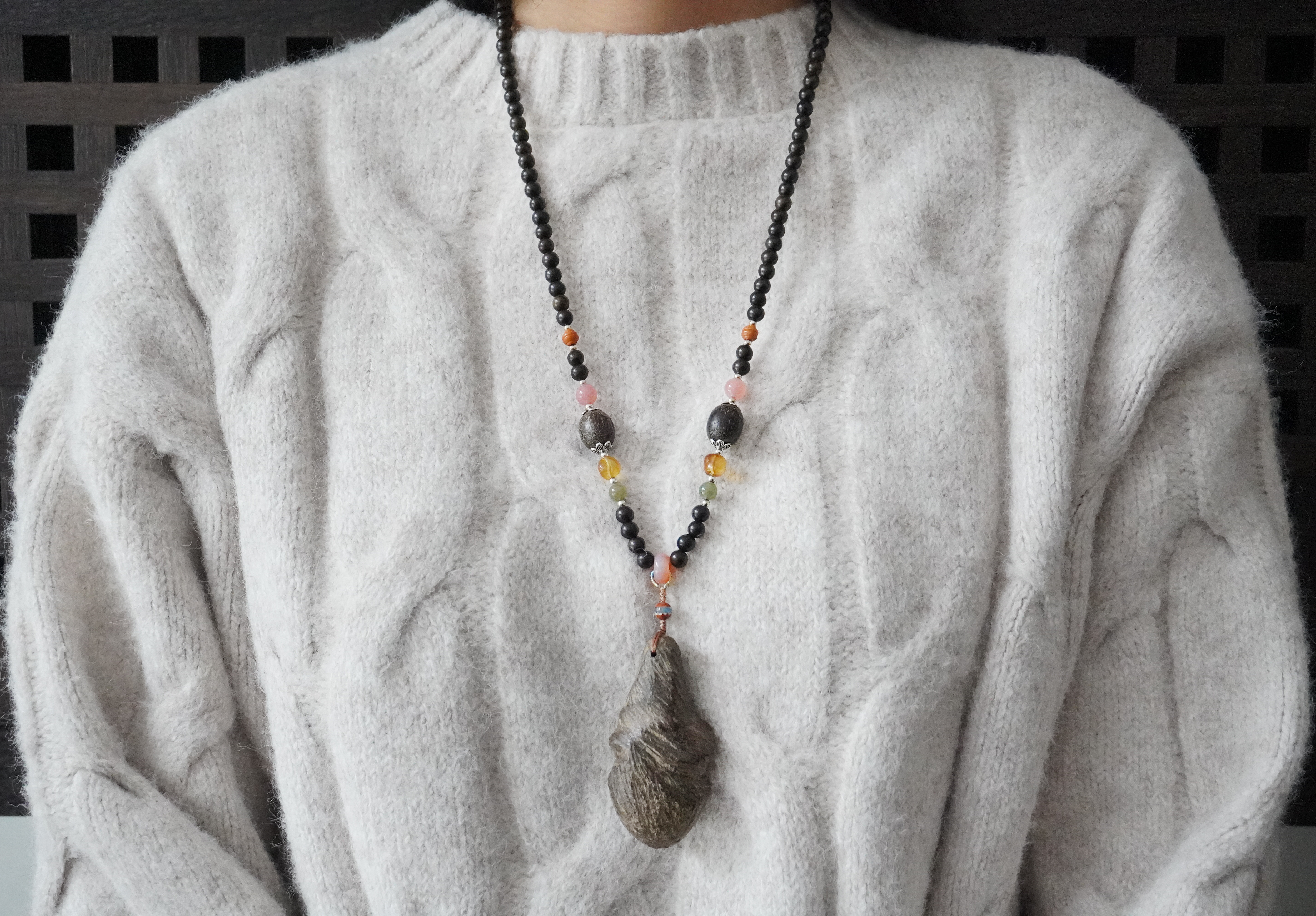 This Agarwood Pendant Sweater Chain is crafted from high-quality agarwood, with each bead carefully polished to showcase its unique natural grain and texture. The design is simple yet elegant, featuring a large agarwood pendant that exudes a sense of stability and sophistication, making it a versatile accessory for daily wear or special occasions.
