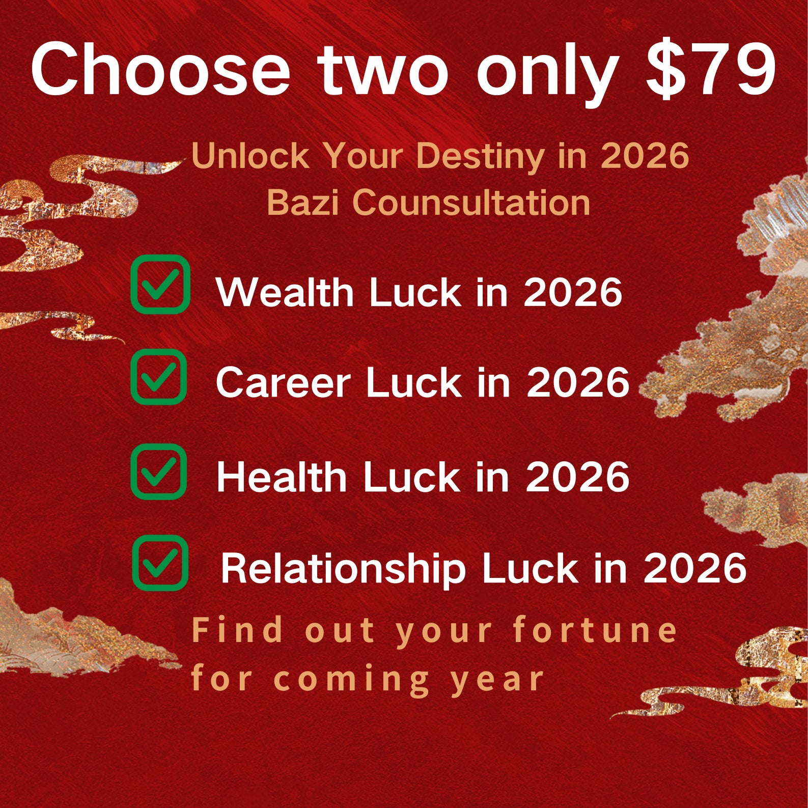 That's why a personalized reading based on your complete birth chart (BaZi) is essential. By analyzing your elemental balance and destiny blueprint, we can provide tailored guidance to help you align with 2026's fiery frequency - unlocking your potential in wealth, career, and relationships, and turning this high-energy year into your breakthrough cycle.